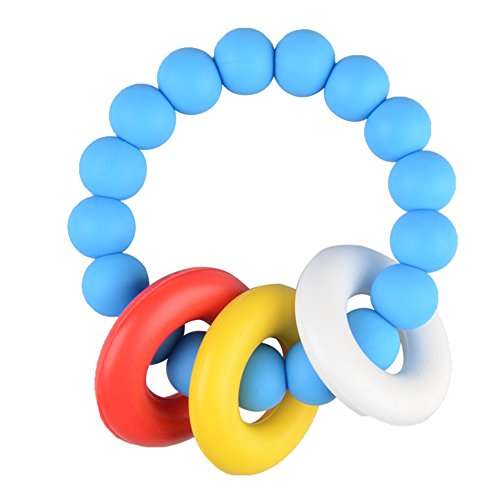 GZQ赤ちゃんのおしゃぶりおもちゃシリコーン安全なおしゃぶり3~12ヶ月の幼児、フタル酸、BPAフリーのニブラーの噛み合わせリング (Blue)