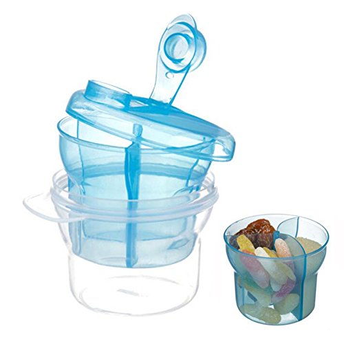 この便利な小さなユニットは、3つの予め測定されたミルクパウダーの部分を別々のコンパートメントに入れています。