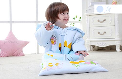 GZQ 赤ちゃん 寝袋 ベビー スリーパー おくるみ パジャマ 綿 防寒 着る布団 袖取り外し可能 冬 (2)青)