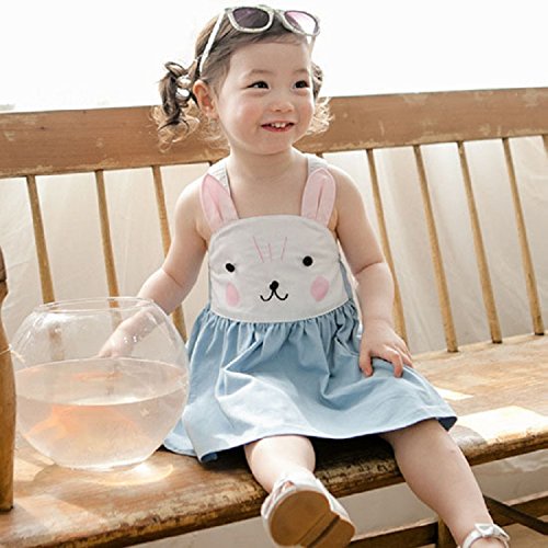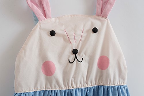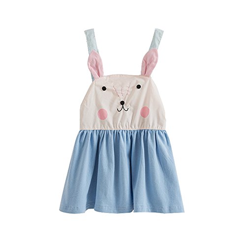 ガールズワンピース 女の子 ノースリーブ可愛いウサギのデザイン バックレスワンピース 子供服 (90)