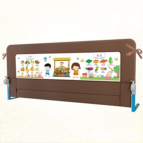ZR- ベッドガードレール子供用ベッドフェンス落ち着いたベッドサイドバッフル大きな柵ユニバーサル折りたたみ式ソリッドスチールプレート収納ポケット強化ストラップ\ 2スピード調整\ 150ゼロギャップ180 \ 200cm (色 : Brown -180cm)