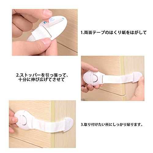 - 応用:子供の指が挟まれることを防ぐため、戸棚、冷蔵庫などに貼る。或いは、引き出しに貼ってて地震の時にとても役に立ちます。*木製の家具に取り付け後剥がしたら塗装も剥げてしまう恐れがあるので、この点にご注意ください。
