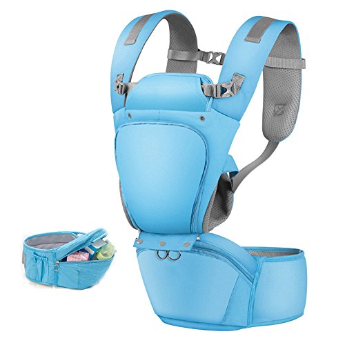 ベビーキャリア、腰、背中とヒップ、多機能通気性ベビーキャリア四季ユニバーサル (3~20Kg、0-36 ヶ月),Lightblue