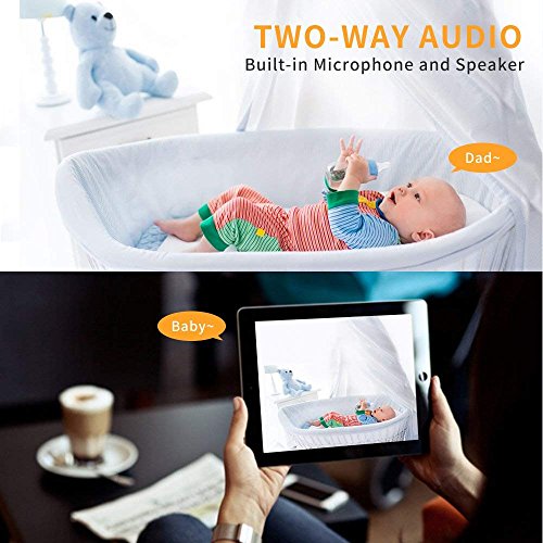 ワイヤレスベビーモニター、720P HDセキュリティカメラチルト/ズーム、双方向インターホン音楽温度センサー赤ちゃん泣いて監視スマートカメラ