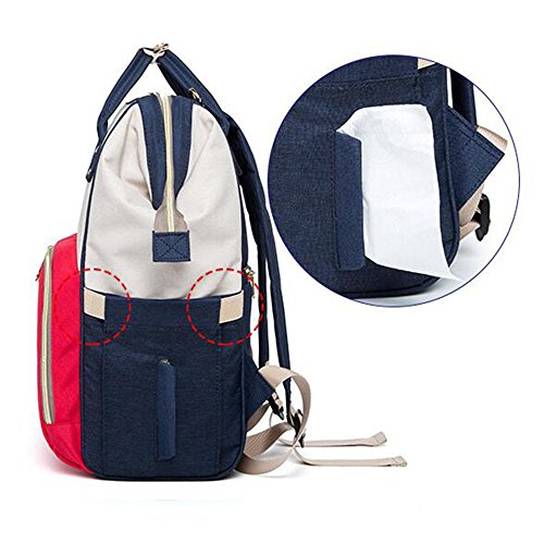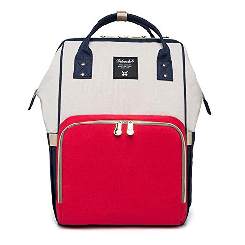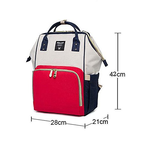 ベビーおむつバッグトラベルバッグ、防水絶縁バッグ、スプライシングカラー多機能大容量ポータブルストレージバッグ,Redandwhite