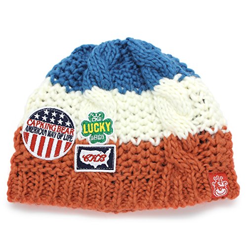 子供 帽子 秋冬カジュアルを取り入れて あったか防寒ニットキャップ キッズ ワイドボーダービーニー 橙