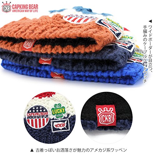 ワイドボーダーが目立つ、手編みのケーブルニットワッチです。