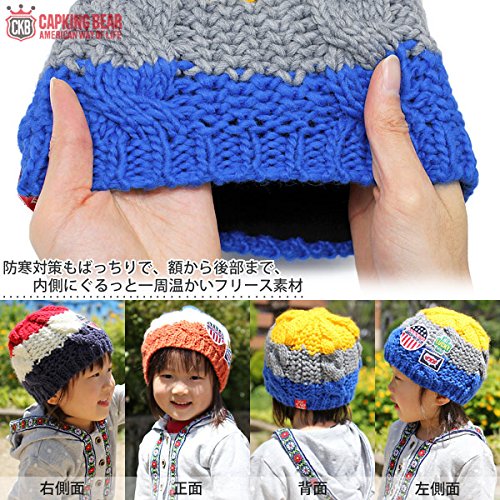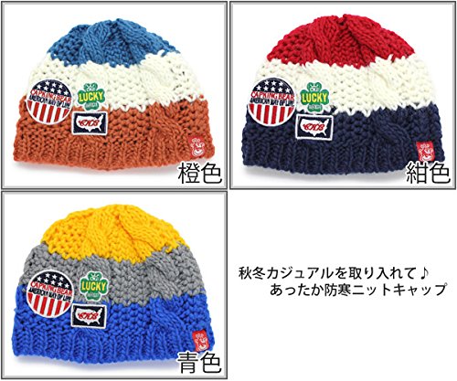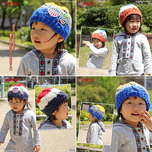 子供 帽子 秋冬カジュアルを取り入れて あったか防寒ニットキャップ キッズ ワイドボーダービーニー 青