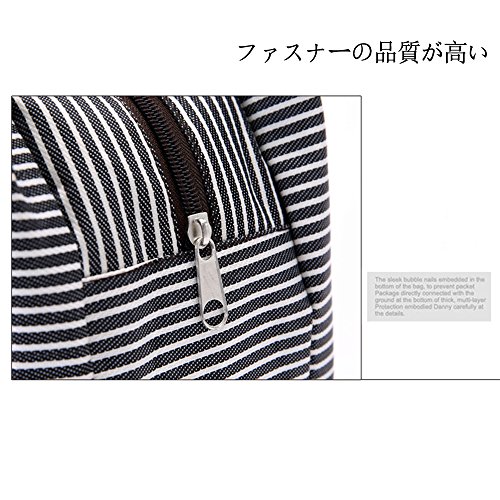 Zafina マザーズバッグ 軽量 大容量 ストライプ 縞柄 サイドポケット (グレー)