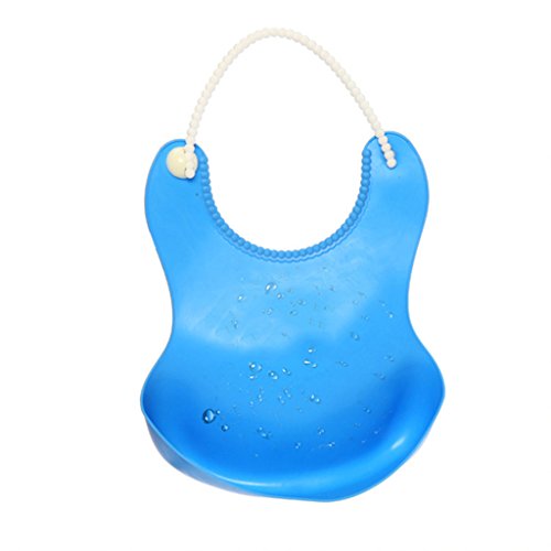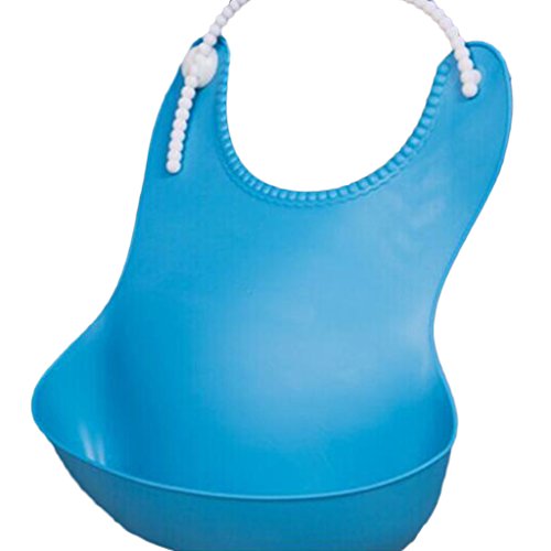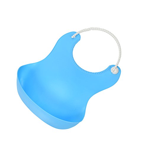 Zafina お食事用 ソフトスタイ 防水 柔らかい 赤ちゃんビブ 漏れ防止シリコーンポケット 調節可能 (ブルー)