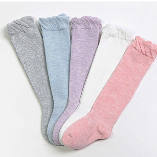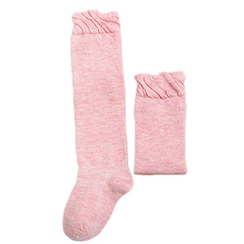 Zafina ベビーソックス おしゃれ 保温秋冬 出産祝い 温かい 無地 キッズ 靴下 縫い目ない ハイソックス (M(1-3歳), ピンク)