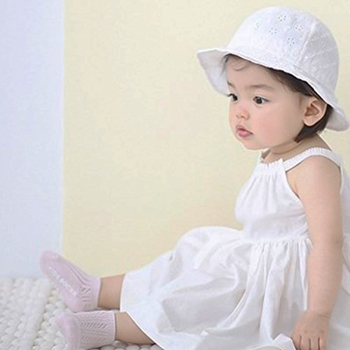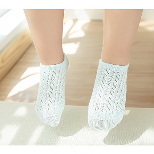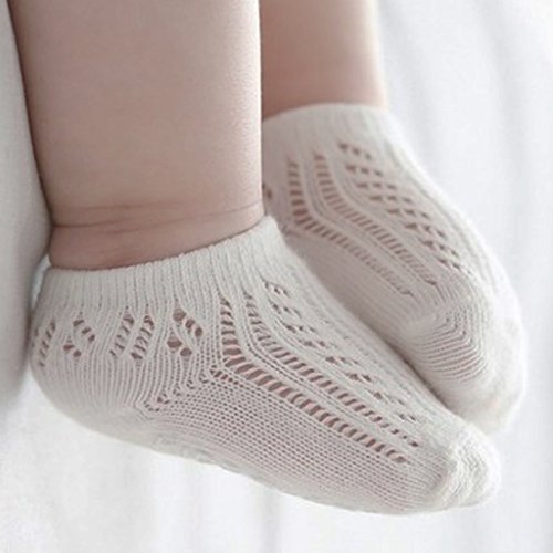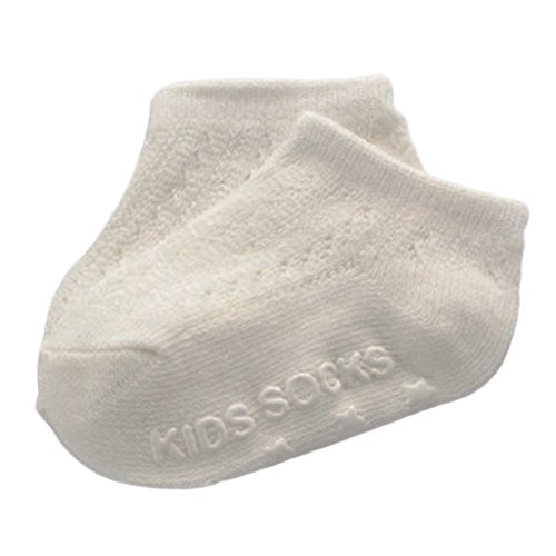 Zafina ベビー メッシュソックス 滑り止め 薄型 メッシュ 子供靴下 柔らかい 春夏 通気性抜群 可愛い 無地 ショート ソックス (S(0-2歳), ホワイト)
