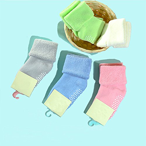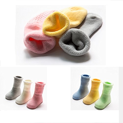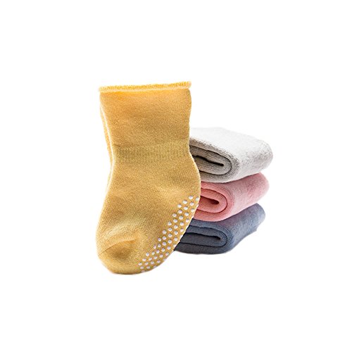 Zafina 新生児 可愛い ソックス 滑り止め付き お祝い 出産プレゼント ムール用 ストッキング 保温 秋冬 厚手 (M(1~3歳), イェロー)