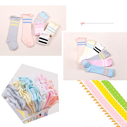 Zafina ベビーソックス 脱げにくい ハイソックス 靴下 防寒 ストライプ 柄 キッズコット靴下 (M(1~3歳), グレー)