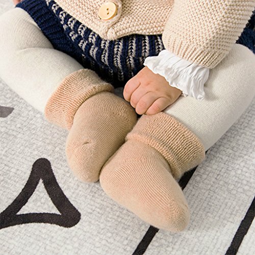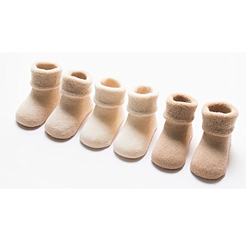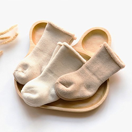 Zafina 子供ハイ靴下 滑り止め付き 暖かい柔らかい 厚手 幼児用 秋冬 男の子 女の子 ムール用 防寒 3足セット (無地, M(12-36月))