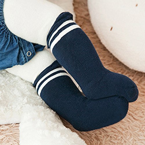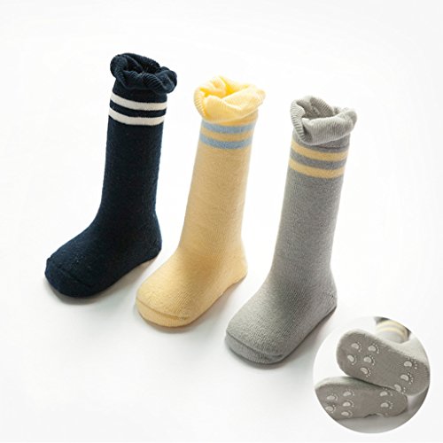 Zafina ハイソックス キッズ 靴下 通学 通園 ストライブ柄 コンフォート 立体 軽量 コットン靴下 3足セット (セット1, M(1-3歳))