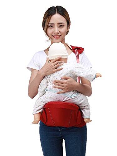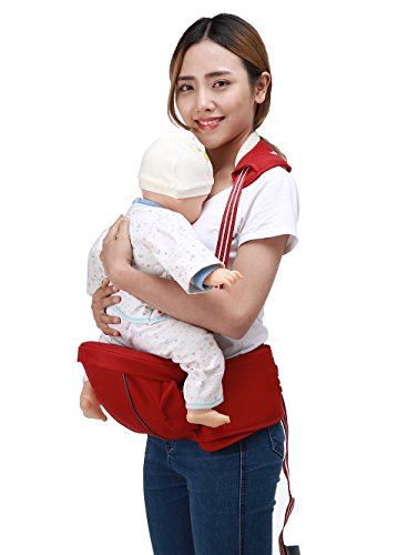 ヒップシート Zaitun ベビーキャリー 抱っこ紐 腰抱っこ シングルショルダーベルトセット 腰負担軽減(新生児~3歳まで) (レッド)