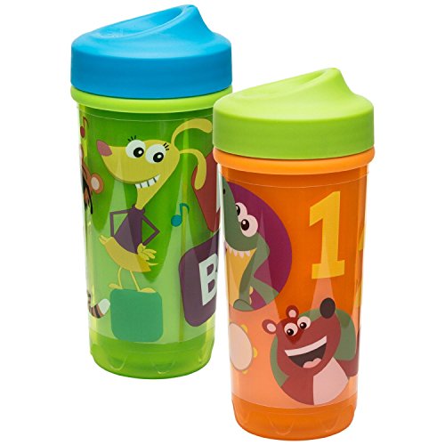 Zak! Designs Baby Genius Toddler Perfect Flo Sippy Cup with Curious Learner Graphics, Double Wall Insulated Tumbler and Adjustable Flow Valve, Leak Proof, BPA-Free Plastic 8.7 oz (Set of 2) [並行輸入品]