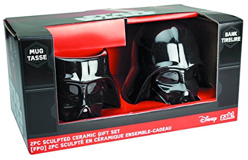 - このDarth Vader成形された銀行とセラミック製マグカップ2個パックセットは、恐れのlikenesses Darth Vaderはお金、または、一口を確実にすることを目的としている誰にアクセス。