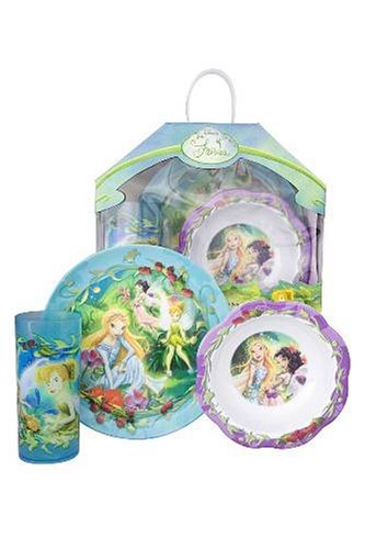セットは、プレート、ボウル、タンブラー(カップ)に囲まれて妖精が異なるグラフィックの花とをフィーチャーしたフォレストのすべて