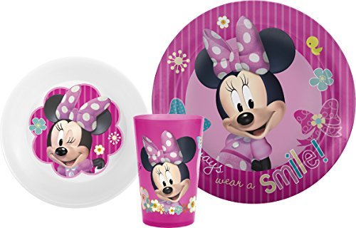 - Zak! Designs Mealtime Set with Plate, Bowl and Tumbler featuring Minnie Mouse, Break-resistant and BPA-free plastic, 3 Piece Set