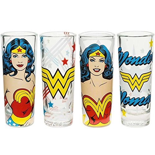 Zak Designs wwnn-s430 Wonder Woman Comics Miniガラス4 Pieceウィンドウボックス、2オンス、マルチカラー