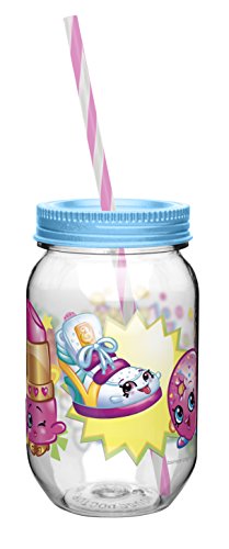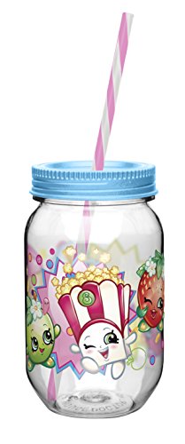 - Zak! Designs Tritan Mason Jar Tumbler with Screw-on Lid and Straw featuring characters from Shopkins, Break-resistant and BPA-free Plastic, 19 oz.