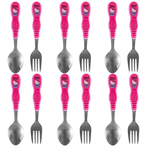 - 内容は以下の通りです。( 1 ) 12pc Hello Kitty銀製食器類セット( 6スプーン,フォーク; 1つで6つのパック入って& 1スプーンが搭載されているため、色の選択、新品、小売包装