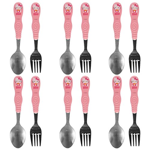 - 内容は以下の通りです。( 1 ) 12pc Hello Kitty銀製食器類セット( 6スプーン,フォーク; 1つで6つのパック入って& 1スプーン)が搭載されているため、色の選択、新品、小売包装