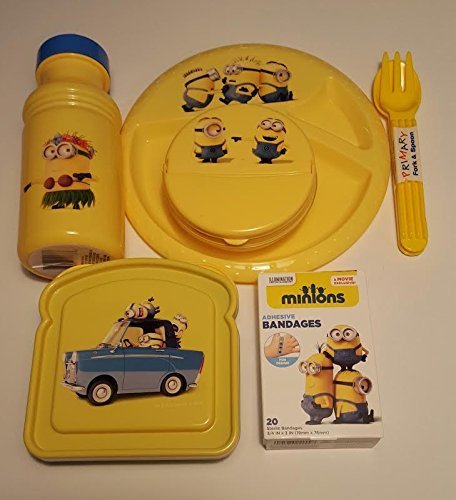 Despicable Me Minions Bundle Wide Mouth Sports Bottle, Plate, Fork & Spoon, Snack Holder, Sandwich Container & Adhesive Bandages [並行輸入品]