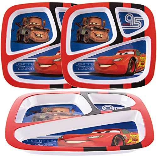 Zak ( 3パック) Disney Pixar Cars Characterプラスチック3-section Dividedキッズパーティープレート