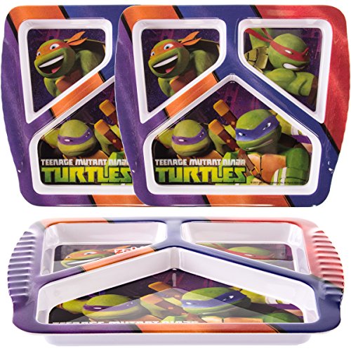 Zak (3パック) Teenage Mutant Ninja Turtles Character BPAフリープラスチック3-section Divided Kids Plates