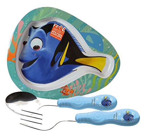 Zak 。Designs Kids Finding Dory魚型プレート&フォーク&スプーンFlatware Set 。BPAフリー、3ピースセット