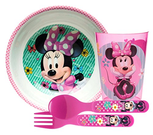 Zak 。Designs Girl 's Mealtime Set Includesボウル、タンブラーカップ、フォークとスプーンfeaturing Disney 's MinnieマウスBPAフリー、4ピースセット