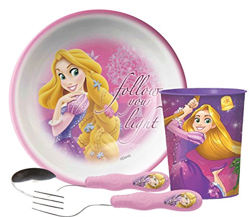 Zak 。Designs Girls " Tangled "ディズニープリンセスラプンツェルMealtime Set Includesボウル、タンブラーカップ、フォークとスプーン。BPAフリー、4ピースセット