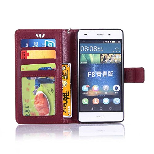 Huawei P8 Lite 手帳型 ケース カバー Zeebox Huawei P8 Lite 高品質 落下防止 保護カバー 財布型ケース カード収納ホルダー&ストラップ付き マグネット式 Huawei P8 Lite 対応 無期限生涯補償付き (蝶 #5)
