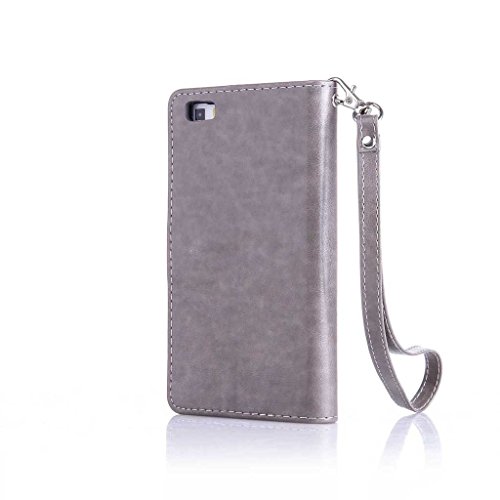 Huawei P8 Lite 手帳型 ケース カバー Zeebox Huawei P8 Lite 高品質 落下防止 保護カバー 財布型ケース カード収納ホルダー&ストラップ付き マグネット式 Huawei P8 Lite 対応 無期限生涯補償付き (グレー #6)