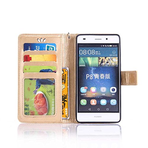 Huawei P8 Lite 手帳型 ケース カバー Zeebox Huawei P8 Lite 高品質 落下防止 保護カバー 財布型ケース カード収納ホルダー&ストラップ付き マグネット式 Huawei P8 Lite 対応 無期限生涯補償付き (蝶 #2)
