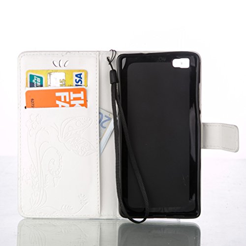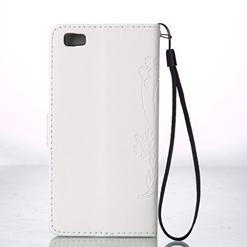Zeebox Huawei P8 Lite 手帳型 ケース カバー 高品質 落下防止 保護カバー 財布型ケース カード収納ホルダー&ストラップ付き マグネット式 Huawei P8 Lite 対応 無期限生涯補償付き (ホワイト)