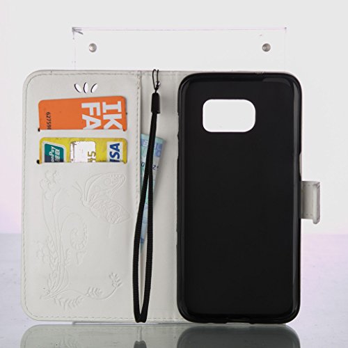 Zeebox Galaxy S7 Edge 手帳型 ケース カバー 高品質 落下防止 保護カバー 財布型ケース カード収納ホルダー&ストラップ付き マグネット式 Samsung Galaxy S7 Edge 対応 無期限生涯補償付き (ホワイト)
