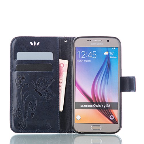 Zeebox Galaxy S6 手帳型 ケース カバー 高品質 落下防止 保護カバー 財布型ケース カード収納ホルダー&ストラップ付き マグネット式 Samsung Galaxy S6 対応 無期限生涯補償付き (ブルー #2)