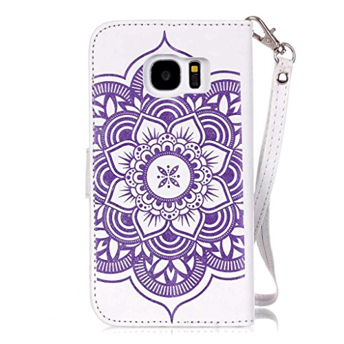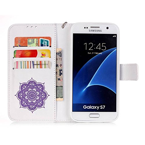 Zeebox Galaxy S7 ケース 二つ折り 手帳型ケース カード収納ホルダー&ストラップ付き 横開き Samsung Galaxy S7 用 カバー 生涯補償付き (紫色)