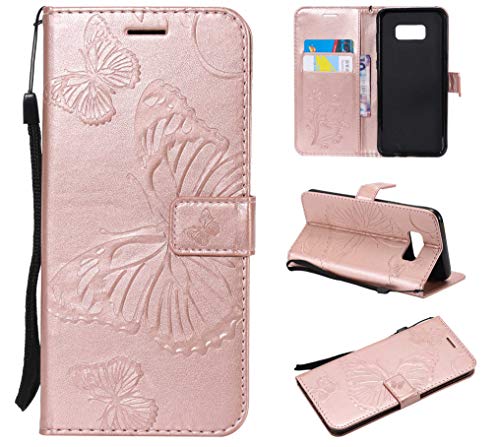 Galaxy S8 Plus PUレザー ケース, Zeebox® 良質 Samsung 収納 ケース 防塵 耐衝撃 マグネット開閉 折り スタンド機能 Galaxy S8 Plus 保護 カバー (ローズゴールド)