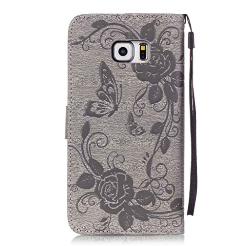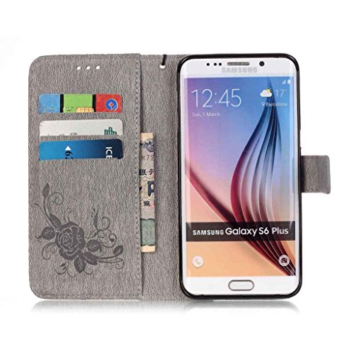 Zeebox Galaxy S6 Edge Plus ケース PUレザー 手帳型ケース カード収納 ホルダー ダイヤモンド Samsung Galaxy S6 Edge Plus 用 カバー 無期限生涯補償付き (グレー)