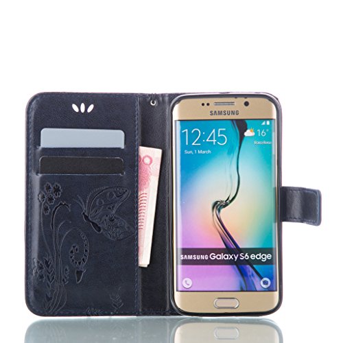 Zeebox Galaxy S6 Edge 手帳型 ケース カバー 高品質 落下防止 保護カバー 財布型ケース カード収納ホルダー&ストラップ付き マグネット式 Samsung Galaxy S6 Edge 対応 無期限生涯補償付き (ブルー #2)