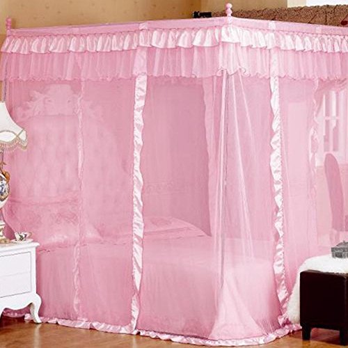 プリンセスモスキートネットは、迅速かつ簡単に昆虫を飼います。4コーナーポストベッドカーテンモスキートネット(ブラケットなし)(1.2*2.0-ピンク)