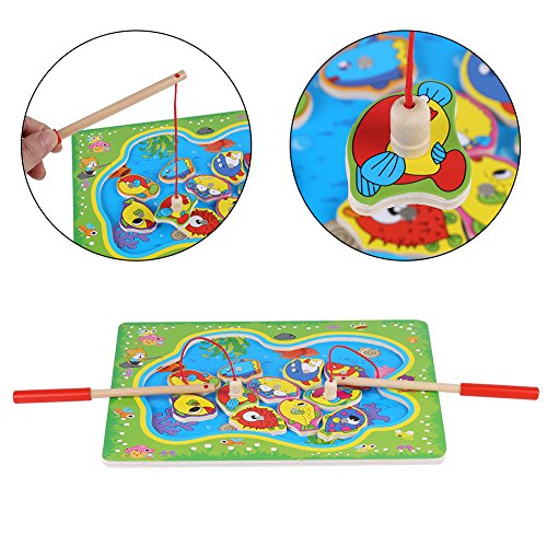 子供おもちゃ さかなつり 木製 魚釣りゲーム フィッシングゲーム 釣り遊び マグネット 木のおもちゃ パズル 知育玩具 親子 (#1)