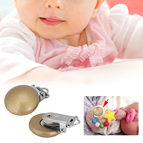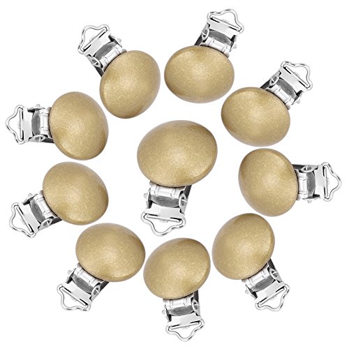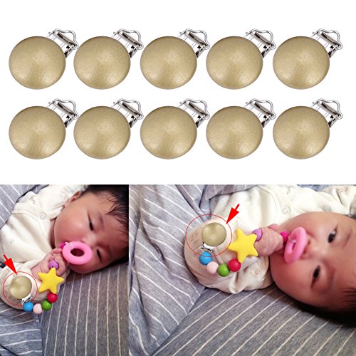10個の金属製のおしゃぶりダミーニップルおしゃぶりのクリップホルダーおしゃれなビーズサスペンダークリップ<br/>新生児用赤ちゃん幼児用<br/>(ゴールデン)