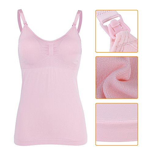 マタニティブラキャミソール 前開き 授乳キャミソール タンクワンピース マタニティインナー カップ付き 授乳服 下着 肌着 ブラトップ(ピンクXL)