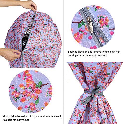 扇風機カバー 143 * 57cm 扇風機安全ほこりカバー 安全カバー 扇風機収納ケース ファスナー付き 花柄 オックスフォード布 耐久性 怪我防止ファンカバー(ブルー)